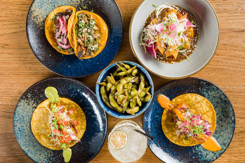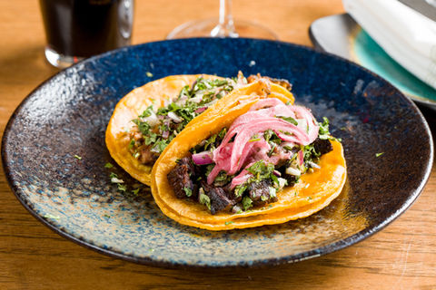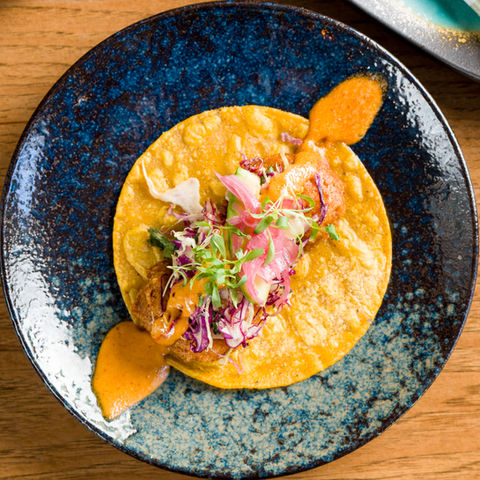 Mexican tiger shrimp, corn tortilla, baja sauce, citrus cabbage mix, avocado, pickled onions, chives